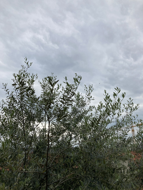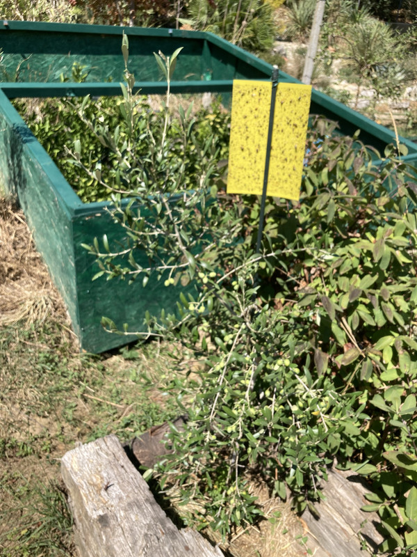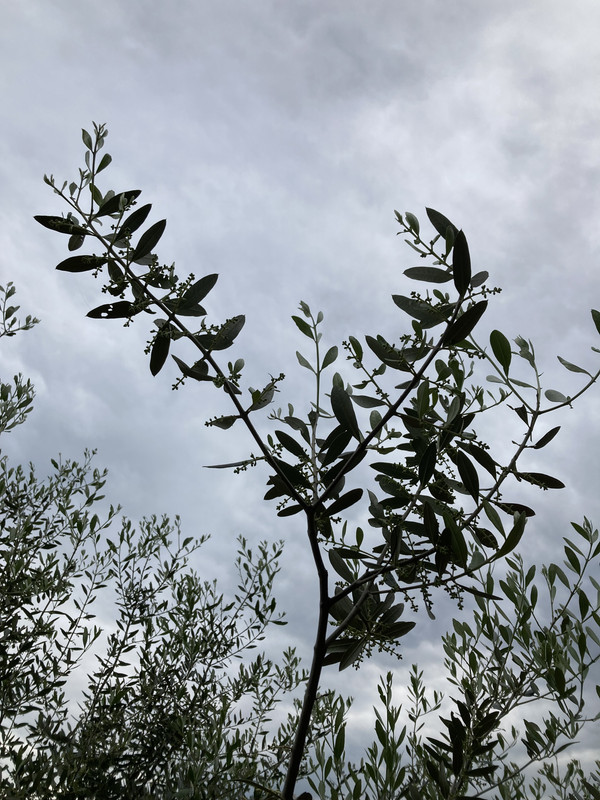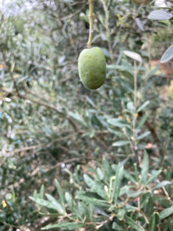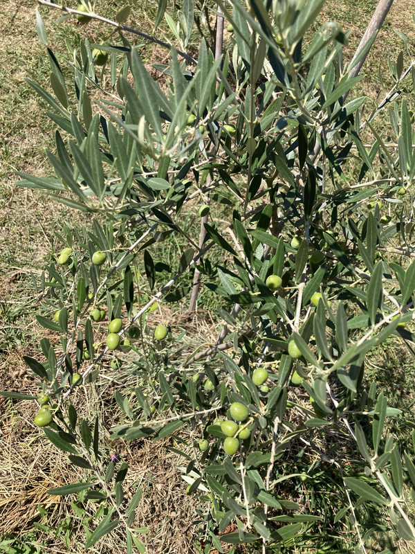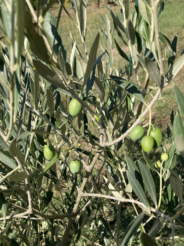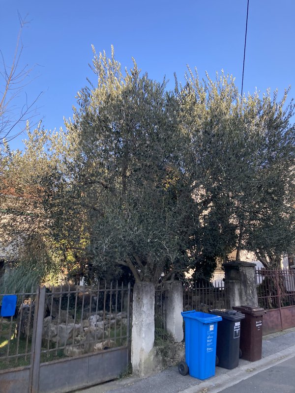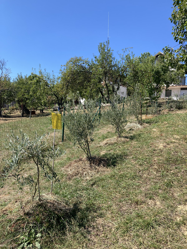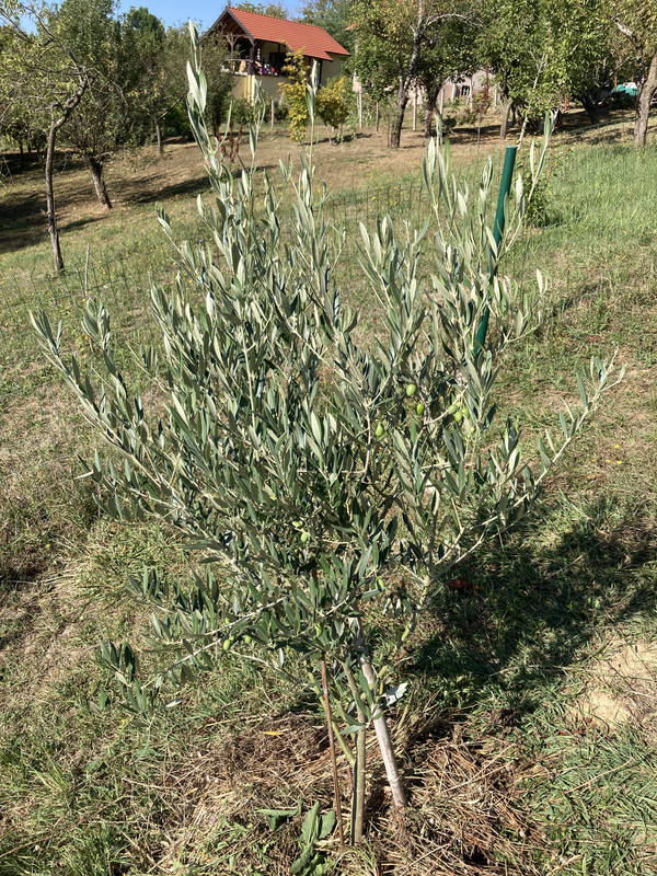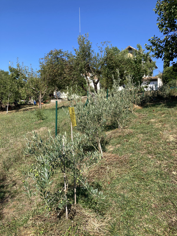 Imam ih još razbacanih po vrtu poput ove padine. Manja je Leccino posadjena 2023. Desno su posadjene 2016 oblica i neka talijanska sorta. Možda i 2015. Znam da su preživjele mjesec dana leda u siječnju 2017. i gotovo bez dizanja u plus tijekom dana.