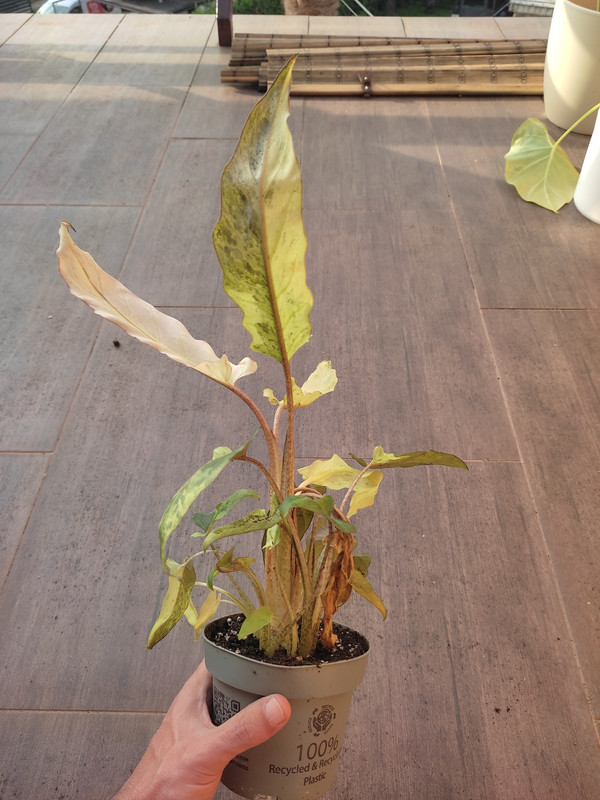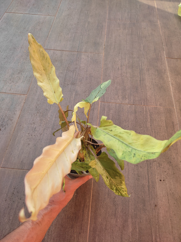 Kažem razočaran jer su 6-7 dana stajale u kutiji (živio Overseas, GLS-om mi iz slovenije stigne drugi dan), i mislio sam da su ova dva, tri najveća lista skroz suha i mrtva, ali izgleda da je samo prirodno blijeda varijegacija u pitanju (plus "isušenost" iako je zemlja bila vlažna i pokrivena stiroporom i omotana, valjda od nedostatka svijetla), a i ostali listovi su bili bolno objeseni (uz ova dva tri najveća blijedunjava lista). Uglavnom, paket je stigao jučer popodne, malo sam ih zalio, i evo maloprije poslikao, tako da još ne znaju ni di je sunce i na koju stranu "glavu" okrenut, ali malo su živnule. Iako sad gledam slike i biljka stvarno fantansticno izgleda na fotkama, samo je baš nekako jako malena uživo xD.