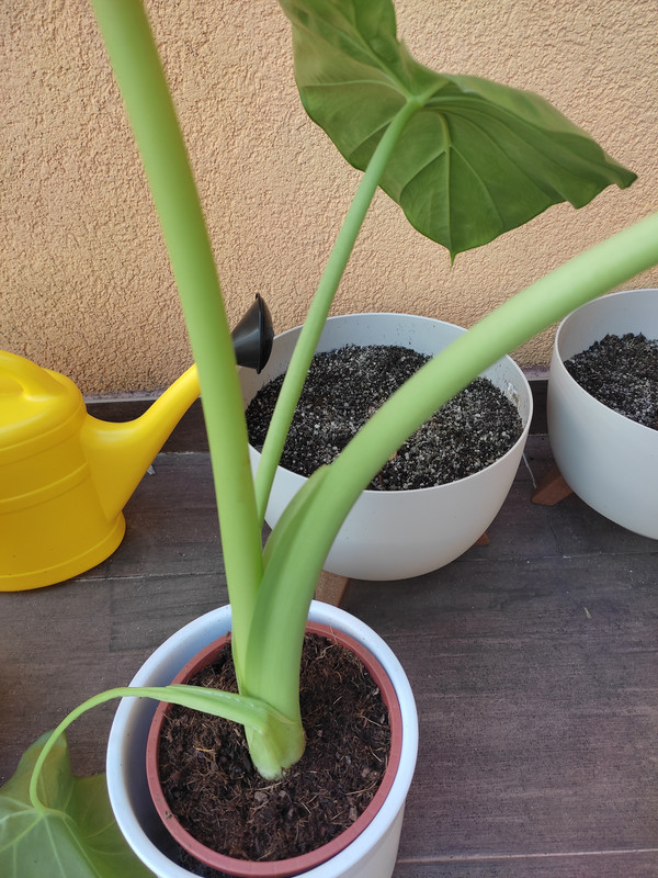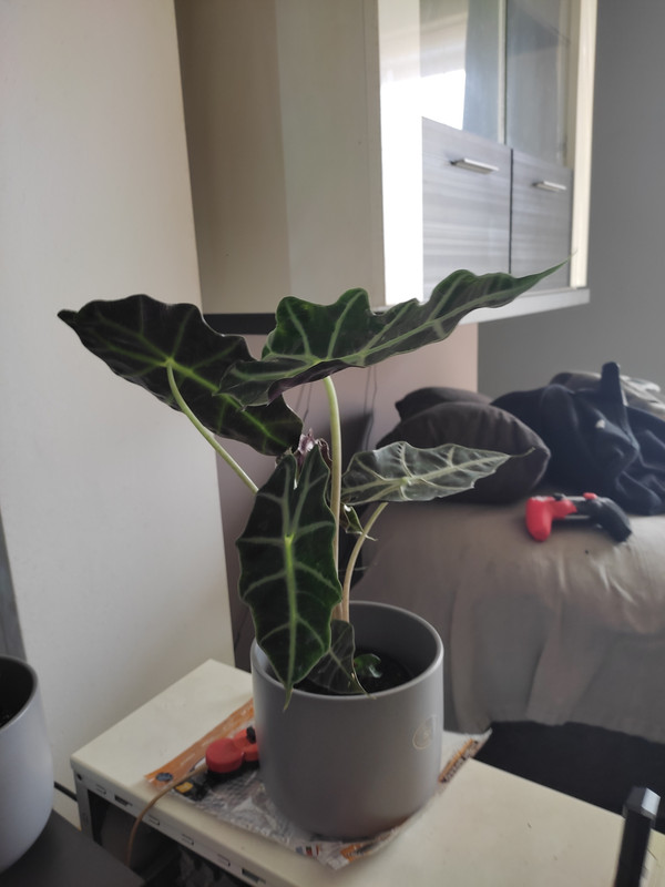 6 (šest) biljaka u posudi. Iskreno, očekivao sam da će biti duplo veća (na slici izgleda puno veća, ali u stvarnosti je daleko najmanja alocasija koju imam :D). Po fotkama sam očekivao biljku veličine ove tri iz predhodnih postova, ali većina listova je trećinu/četvrtinu veličine). Ali ajde, ima nešto slatko i u čekanju :) Inače nisam ljubitelj bijele varijegacije, ali zato totalno padam na svijetlo/tamno zeleno (iako i žuto može proć ako je u kombinaciji sa zelenim).