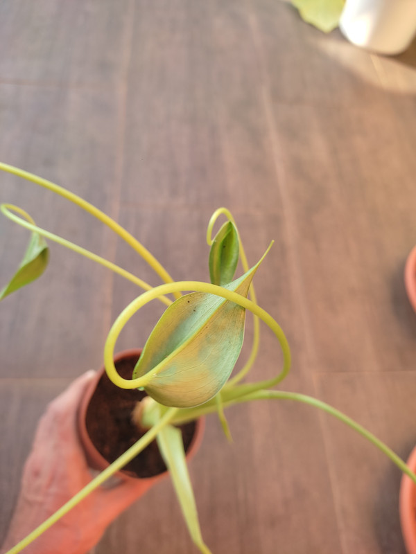 Malo loš kut, nezdogodno mi je uhvatiti cijelu biljku jer su listovi još uvijek dosta savinuti (iako su bili zavezani tijekom transporta, svaka im čast na pakiranju). Sve u svemu, dvije zdrave stabljike, šest listova (doduše jedan na odlasku ali ja prezadovoljan). Nisu mogli ljepsi primjerak poslati (a zadnji je bio).