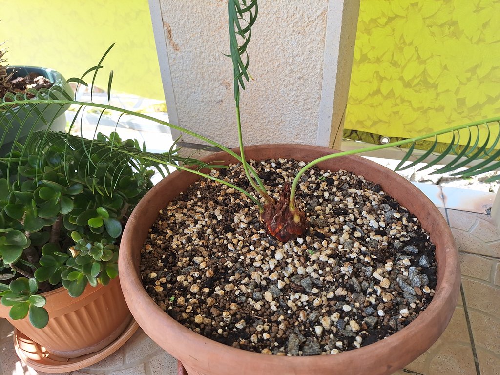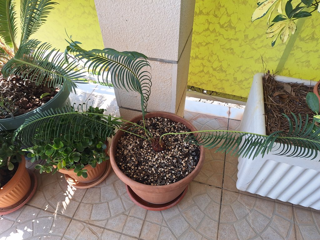 Moj je u zemlji,užasno spor,zna proći 2-3 godine da ne izbaci novi list,lani je izbacio set,ove godine će sigurno preskočiti..Zalivam ga redovno,pognojim tu i tamo,možda bi bio sretniji u hladovini?